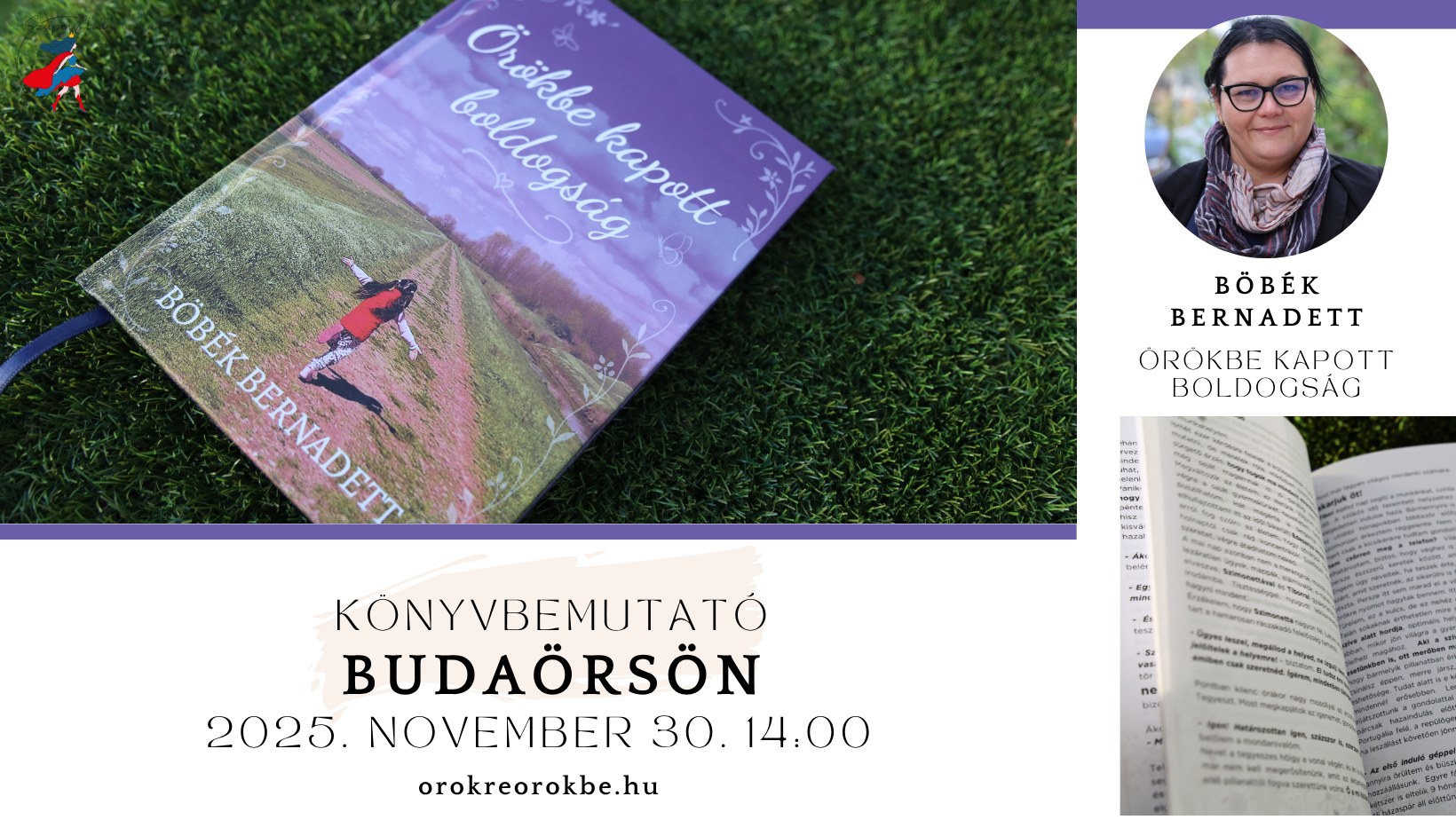 2025. november 30-án 14 órakor lesz Böbék Bernadett első könyvbemutatója Budaörsön, a Budaörsi Tanodában (2040 Budaörs, Farkasréti út 6/A)