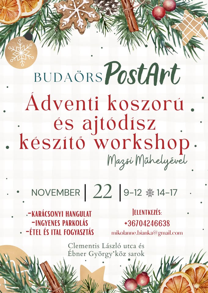 Biztosítsd be a helyed a fantasztikus hangulatú adventi koszorú és ajtódísz készítő work shopra, amit Mazsi Műhelye tart idén is nektek!